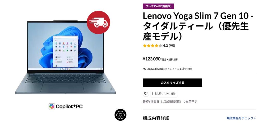 【到着待ち】Lenovo Yoga Slim 7 Gen 10