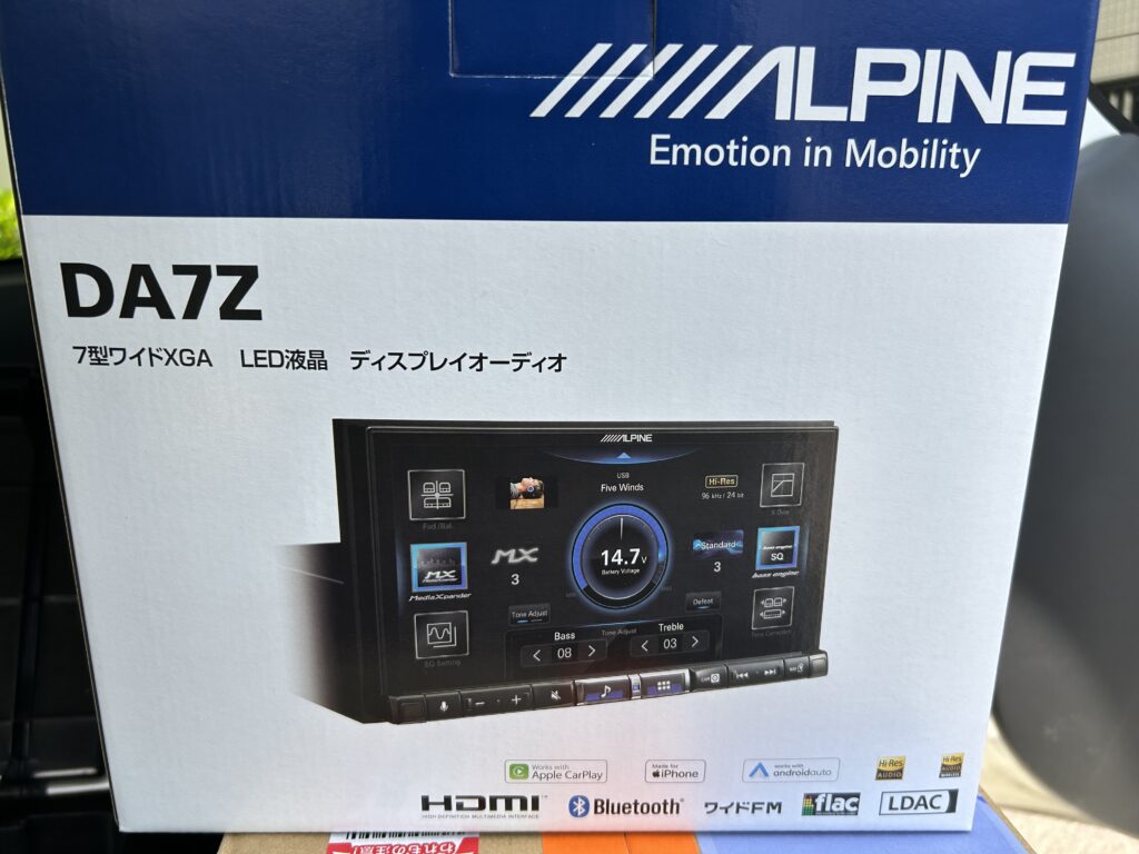 アルパインの7インチディスプレイオーディオ。これも弟からの依頼を受けて買ったもの。弟は車にも興味がない人間。