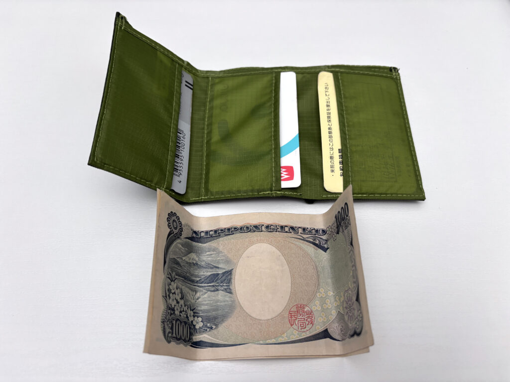 2つ目は入手性で、実物を確認できるのはモンベル直営の実店舗のみ。現状2,400円で購入できるのはモンベル直営の通販サイトと実店舗だけで、Amazonや楽天では基本的に外部ショップ経由での購入になる。2025年10月時点の販売価格は約3,000~4,000円と結構割高。それでも財布としては安いほうだけど、最安値での入手は若干敷居が高い点には注意したい。